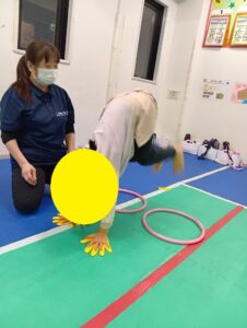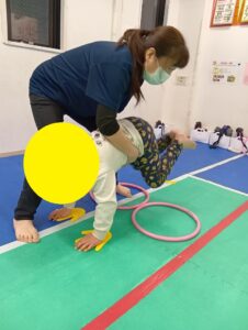 ①『クマの姿勢で足ジャンケン』のポイントは