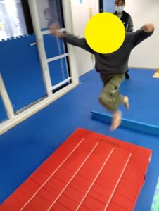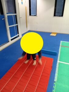 ・尻もちをつかないように、両足で着地をします