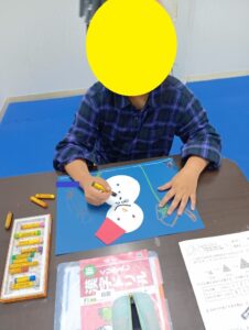 ・ゆきだるまの顔をクレヨンで描く