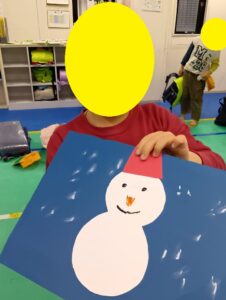みんな思い思いに雪だるまの顔や雪を描いて楽しみました。