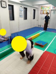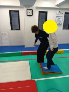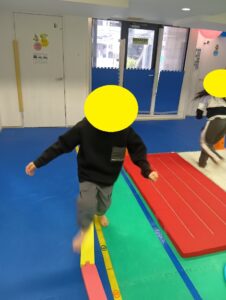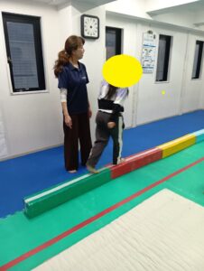 平均台から落ちないようにバランスをとる、平均台渡りもおこないました。